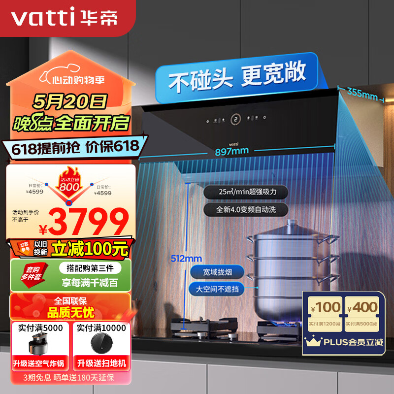 华帝(VATTI)抽油烟机家用变频大吸力烟机燃气灶烟灶套装25风量自动清洗侧吸油烟机灶具A2+78B天然气价格:4299.00元!