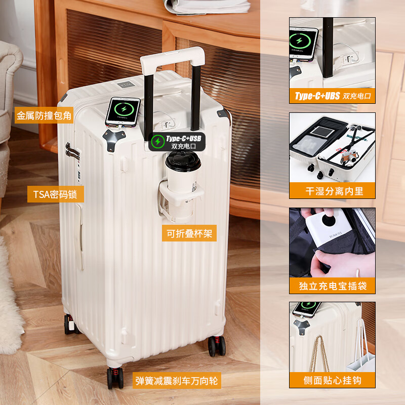 DULA五轮大容量行李箱杯架旅行箱充电拉杆箱密码箱皮箱子皓月白24英寸价格:339.00元!