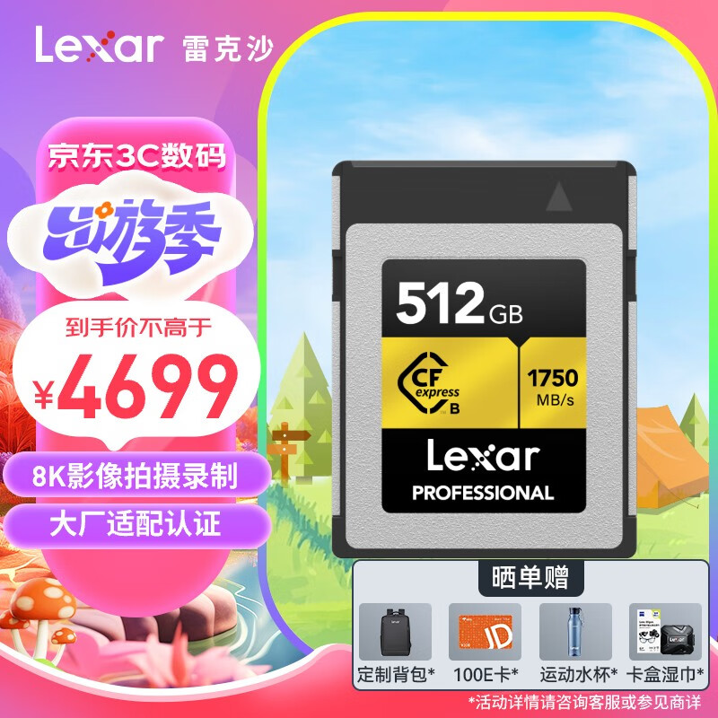 雷克沙(Lexar)512GB CFexpress Type B存储卡 读1750MB/s 富士佳能尼康原厂推荐 8K录制 cfe内存卡(GOLD)价格:4699.00元!