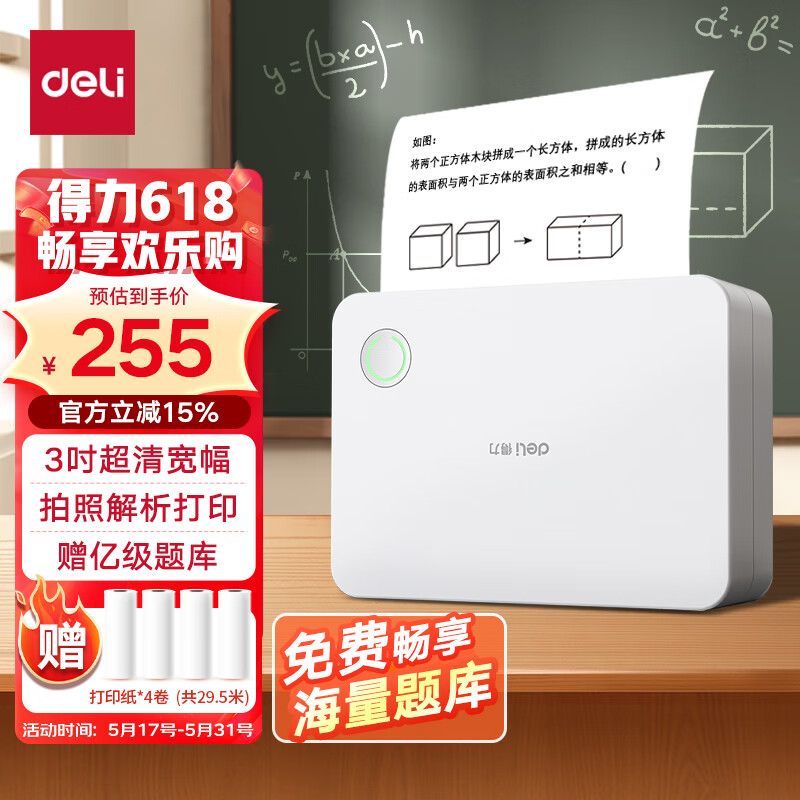 得力(deli)X5S学习错题打印机 错题整理相印宝学生作业家用便携式热敏打印机 3英寸300dpi超清款价格:299.00元!