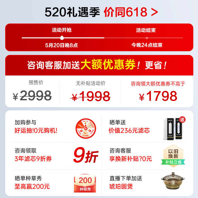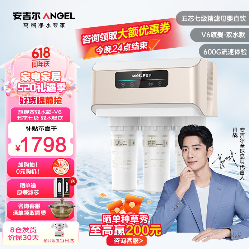 安吉尔肖战代言 净水器家用V6 五芯七级精滤母婴直饮水机 1.46升/分钟体验600G流速体验 净水机排名前十 【热卖百万+台】【双水畅饮母婴级保留矿物质】价格:1798.00元!