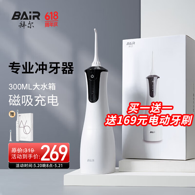 拜尔 M4电动冲牙器 手持式专业水牙线家用声波式水流去除器超正畸专用牙齿清洁洗牙神器 送女男朋友价格:289.00元!