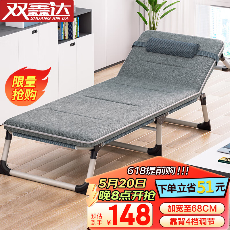 双鑫达 折叠床 躺椅单人床办公室午睡午休床陪护床行军床68cm宽含垫B-16价格:148.00元!