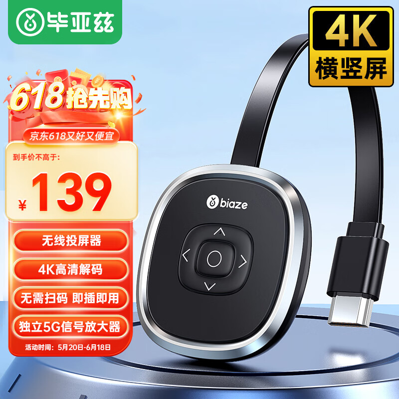 商品名称:毕亚兹手机无线投屏器4K高清R99