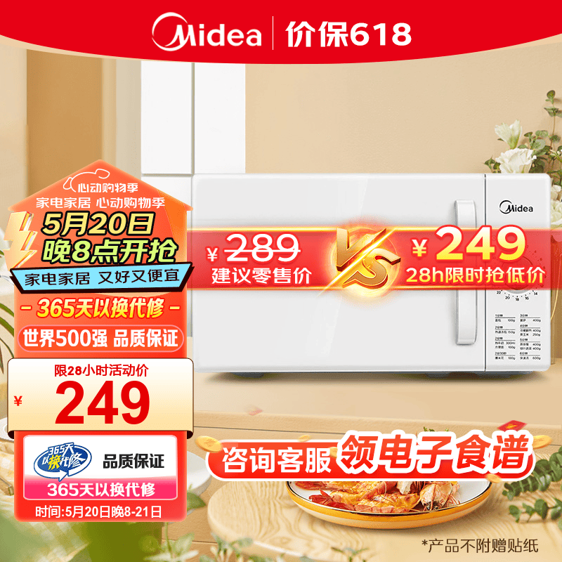 美的(Midea)快捷家用微波炉 家用小型迷你 360°转盘加热 旋钮操控 易洁内胆 时间调节20升(PM2000)价格:249.00元!