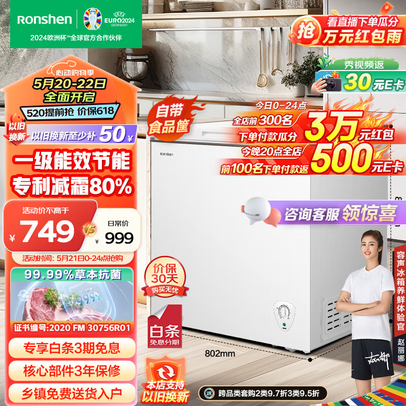 容声(Ronshen)200升减霜小型冰柜家用冷藏冷冻转换单温冷柜 一级能效家商两用卧式冰箱BD/BC-200ZMSMB价格:749.00元!