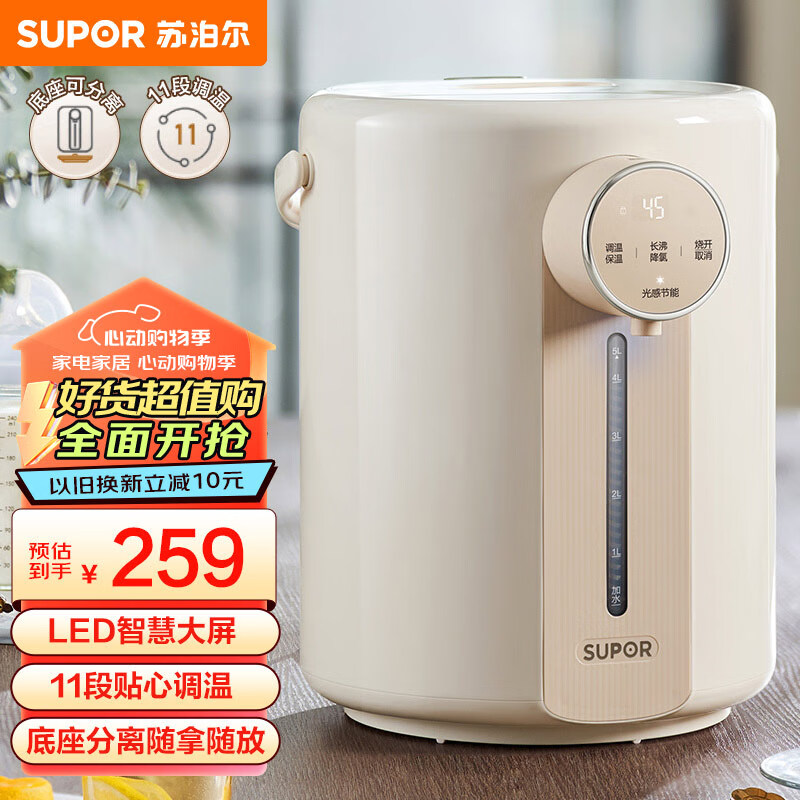 苏泊尔(SUPOR)电热水瓶 除氯电热水壶烧水壶 5L大容量304不锈钢电水瓶 多段保温恒温电水壶 SW-50T109价格:259.00元!