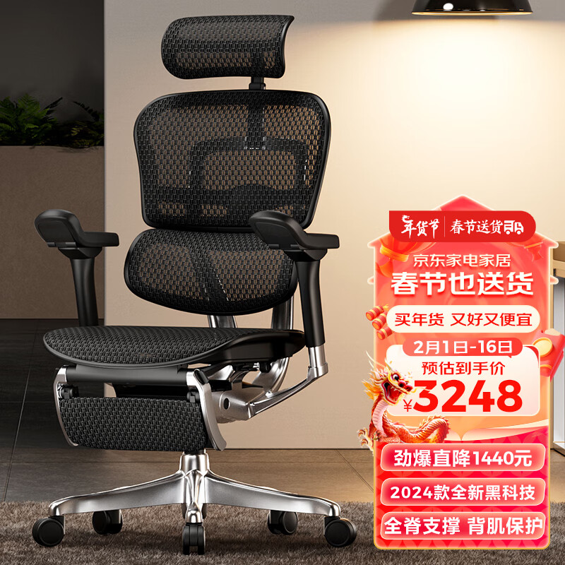 保友办公家具(Ergonor)金豪e 2代高端人体工学椅电脑椅办公椅电竞椅 黑色Q4.0网+躺舒宝价格:4688.00元!