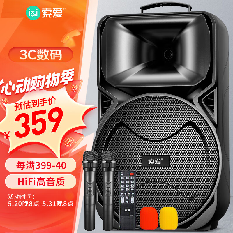 索爱(soaiy)SA-X81 12英寸广场舞音响大功率低音炮移动户外K歌蓝牙拉杆麦克风音箱扩音器无线话筒摊摆摊喇叭价格:399.00元!