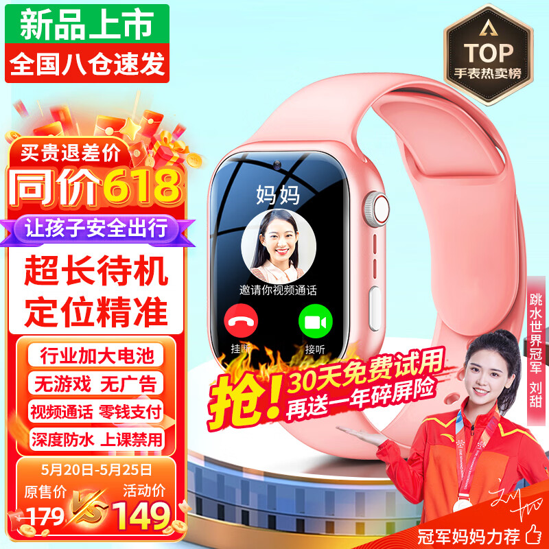 爱百分【无游戏长待机】儿童智能电话手表插卡5G4G卡通用wifi下载学生多功能精准定位青少年手表礼物 升级版粉【约15天待机+视频通话+精准定位+支付】 1.81大屏无游戏无广告价格:149.00元!