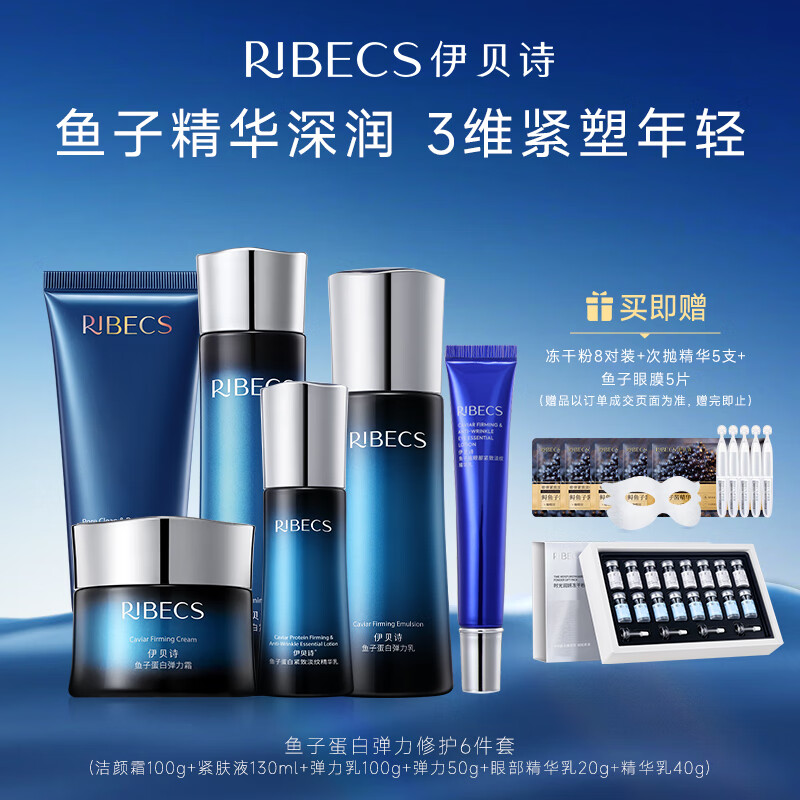 伊贝诗鱼子蛋白弹力修护化妆品补水保湿提拉紧致护肤品水乳6件套礼盒价格:449.00元!