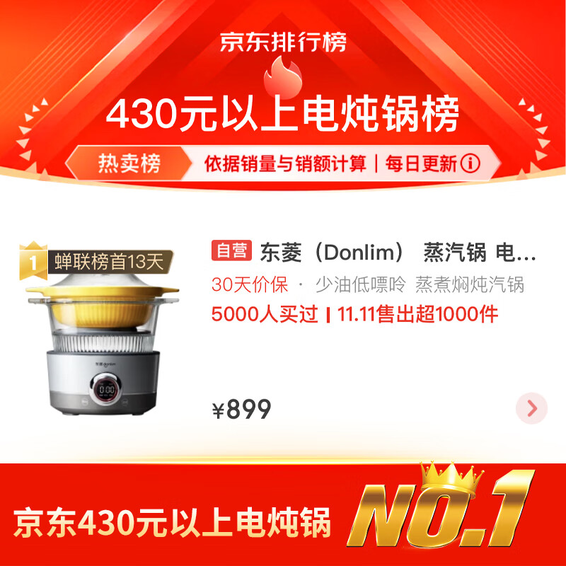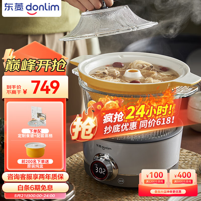 东菱(Donlim) 蒸汽锅 电炖锅 汽锅 家用电蒸锅 多功能蒸炖锅 隔水炖盅 云南汽锅鸡(煮锅+汽锅)DL-9009价格:749.00元!