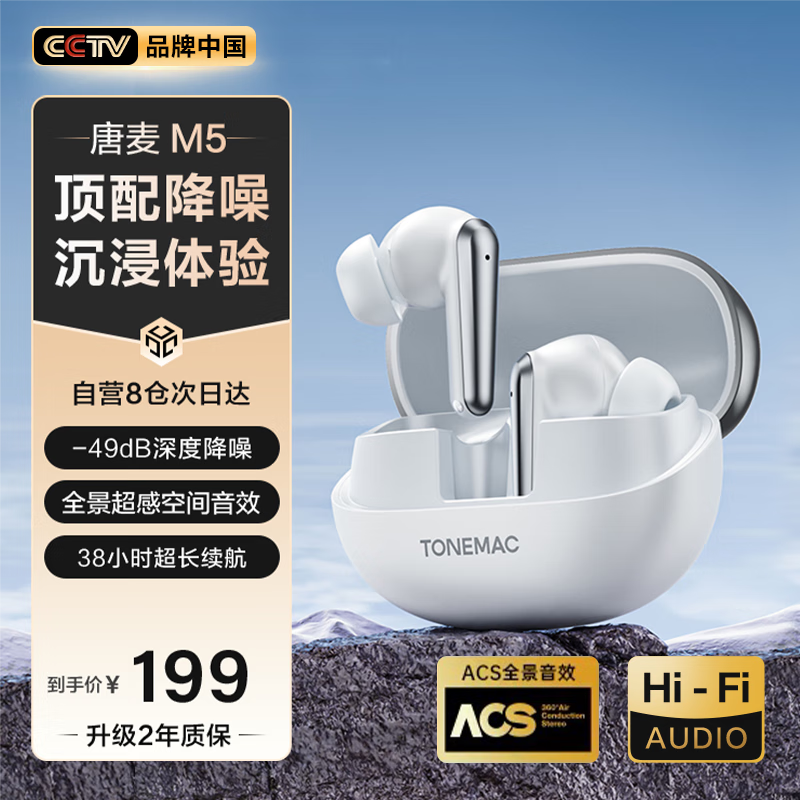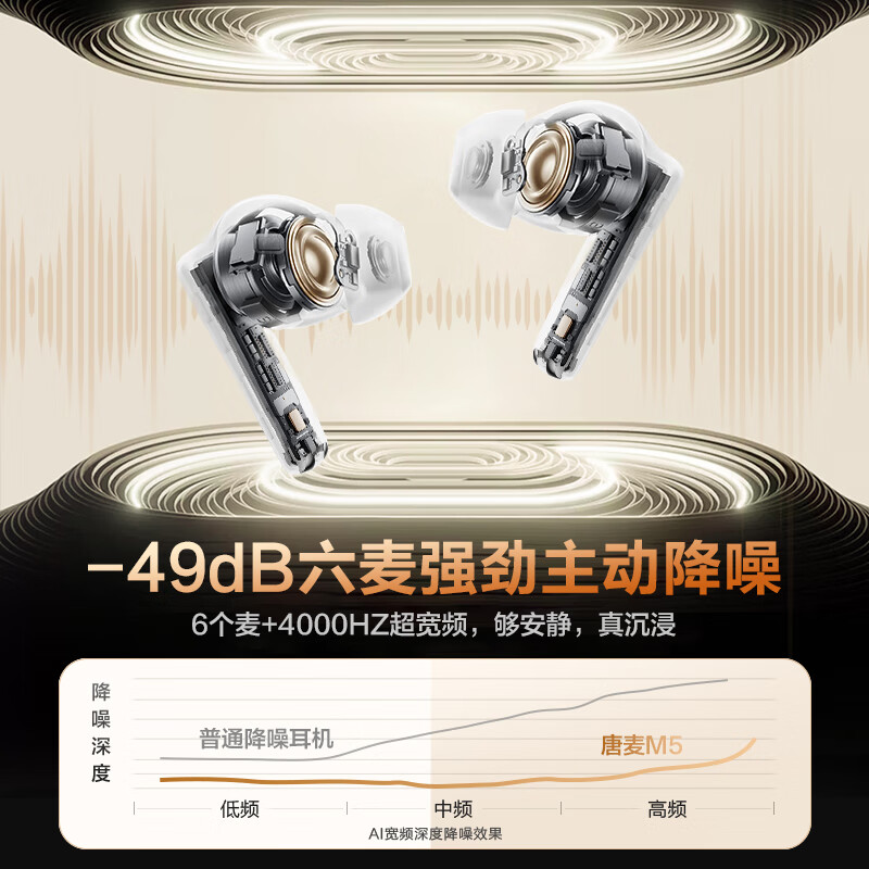 唐麦M5 【24年新品丨6麦降噪】无线蓝牙耳机主动降噪入耳式耳机HiFi高音质超长续航适用于苹果华为小米价格:239.00元!