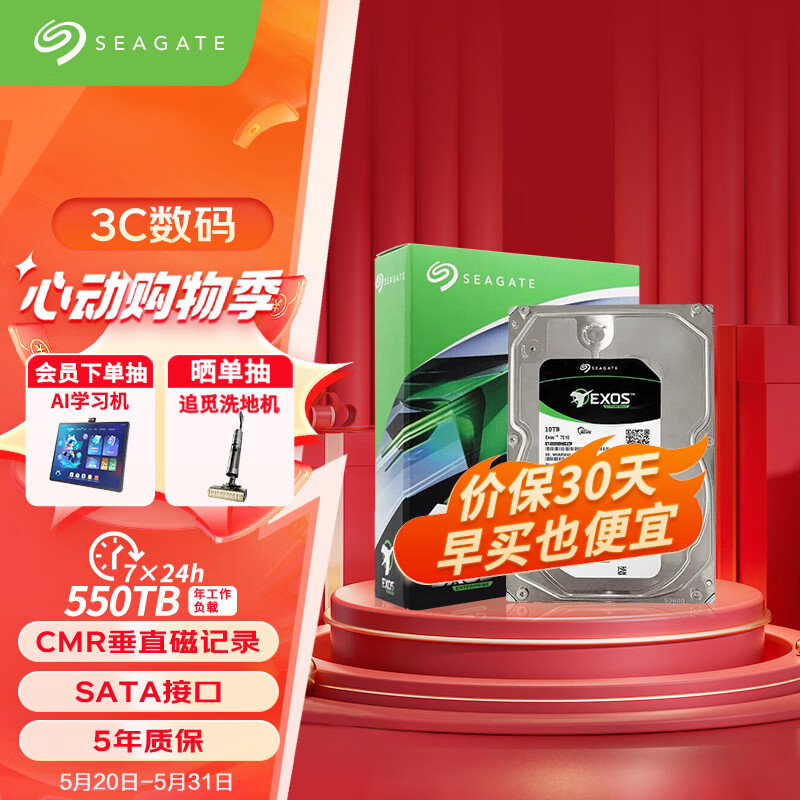 希捷(SEAGATE)企业级硬盘 10TB 256MB 7200RPM CMR垂直 SATA 希捷银河Exos 7E10系列 服务器硬盘价格:2069.00元!
