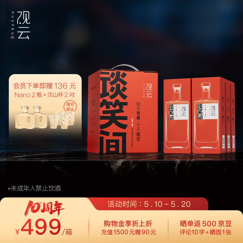 观云精装谈笑间 浓香型白酒 52度 500ml*6瓶 整箱装 含礼袋*3 送礼价格:599.00元!