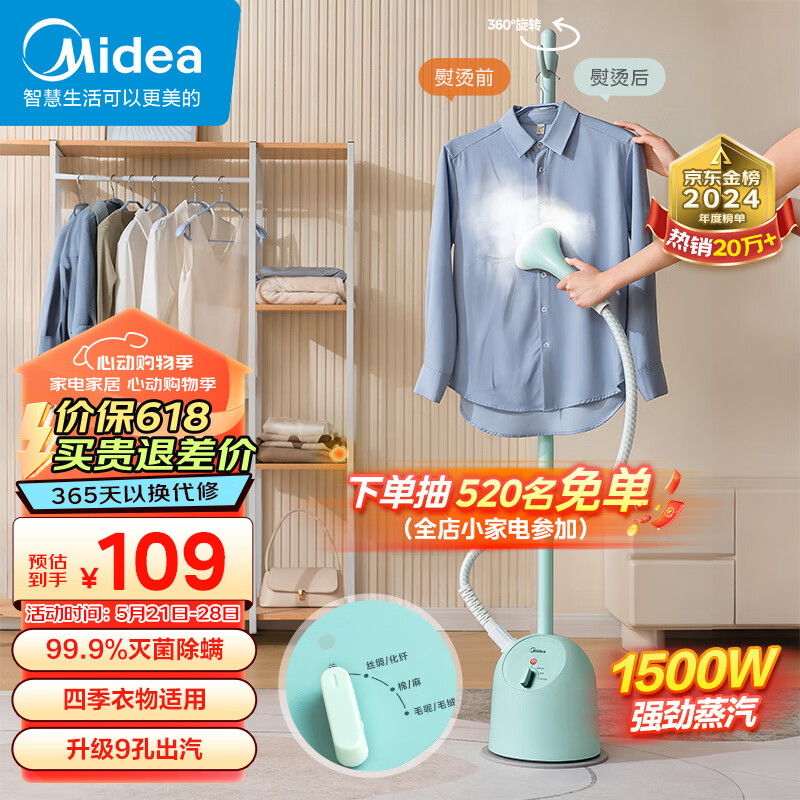 美的(Midea)【衣帽架+熨烫多功能】蒸汽挂烫机家用手持电熨斗熨烫机服装店烫衣服YGJ15Q1价格:121.11元!