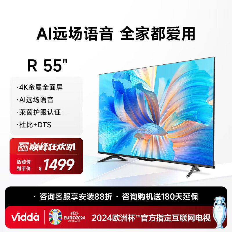 Vidda R55 海信电视 55英寸 超高清 屏电视 智慧屏 1.5G+8G 游戏液晶巨幕电视以旧换新55V1F-R价格:1499.00元!