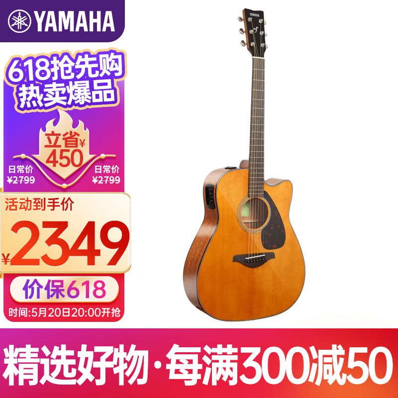 雅马哈(YAMAHA)FGX800C VN实木单板 初学者电箱民谣吉他缺角吉它41英寸复古色价格:2799.00元!