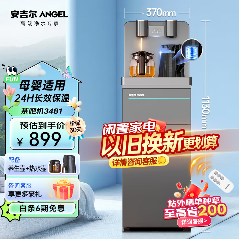 安吉尔茶吧机家用高端客厅用智能全自动烧水煮茶一体饮水机下置式制热多档调温立式桶装饮水机CB3481LK-J价格:899.00元!
