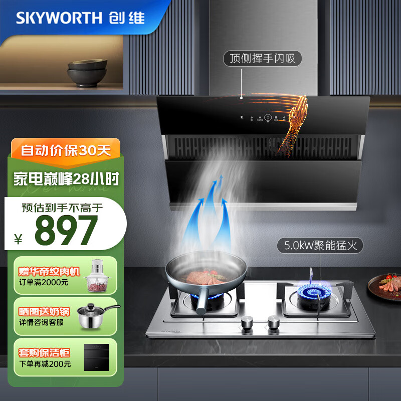 创维(Skyworth)抽油烟机灶具套装 家用大吸力烟灶套餐小尺寸油烟机燃气灶套餐烟灶套装Y101+Z50S液化气价格:897.00元!