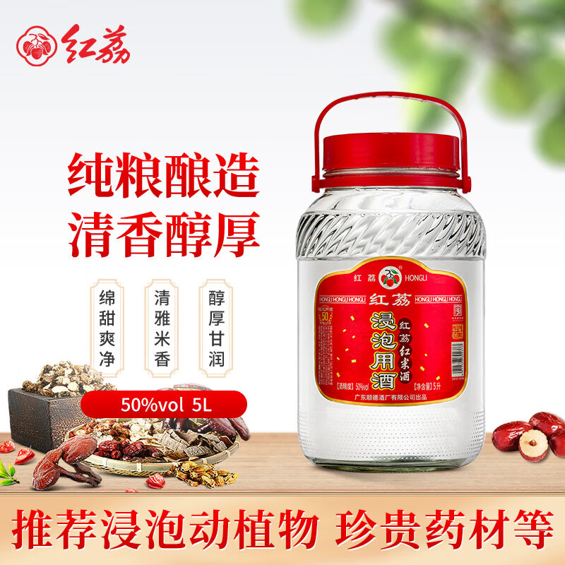 红荔牌米香型白酒 50度浸泡酒5L 红荔红米酒广东米酒青梅药材养生酒泡酒价格:162.50元!
