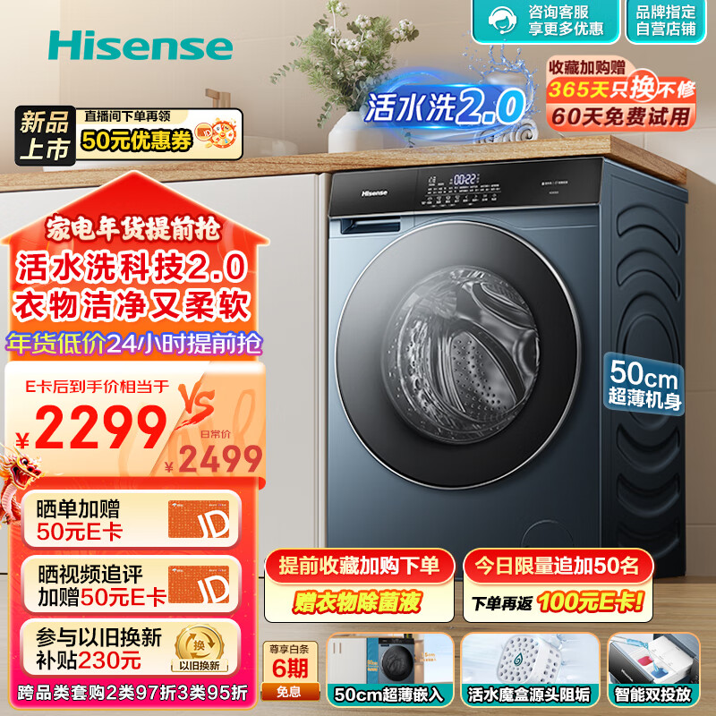 海信(Hisense)滚筒洗衣机全自动 10公斤洗烘一体 超薄智能双投放 活水洗2.0 HD10SE5 以旧换新价格:2399.00元!