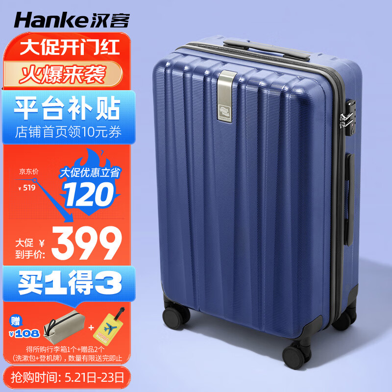 汉客行李箱男拉杆箱女旅行箱60多升大容量24英寸黛蓝色密码箱再次升级价格:519.00元!