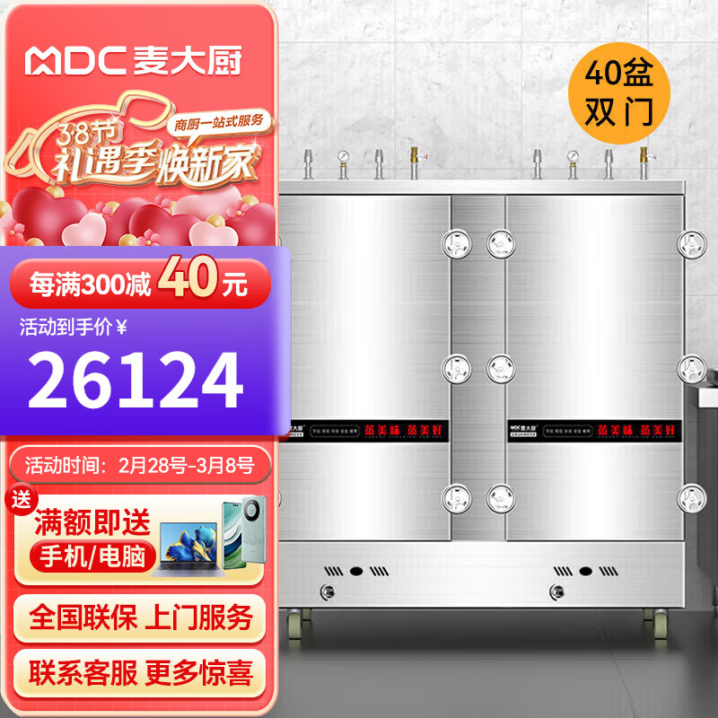 麦大厨 蒸饭柜商用蒸箱蒸包炉蒸馒头蒸饭车食堂酒店饭店厨房加厚发泡40盘燃气高原蒸柜MDC-DMD-GYRX-40价格:30124.00元!