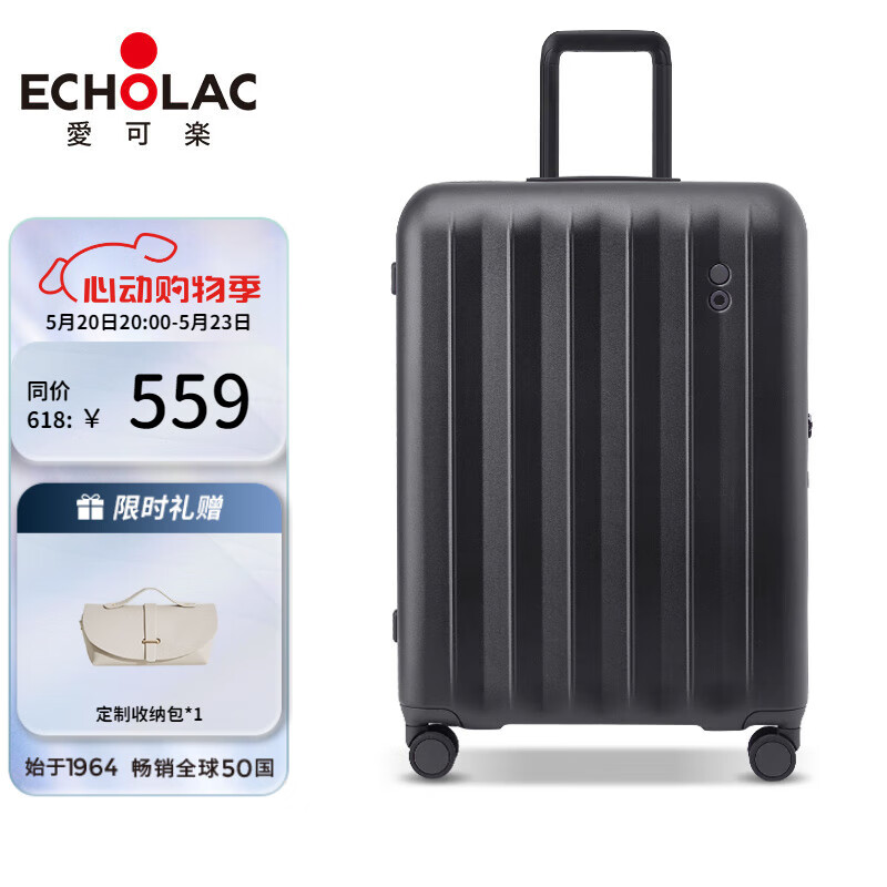 爱可乐(Echolac)万向轮行李箱旅行箱密码箱防刮旅游扩容箱登机箱 PC232 黑色20吋价格:659.00元!
