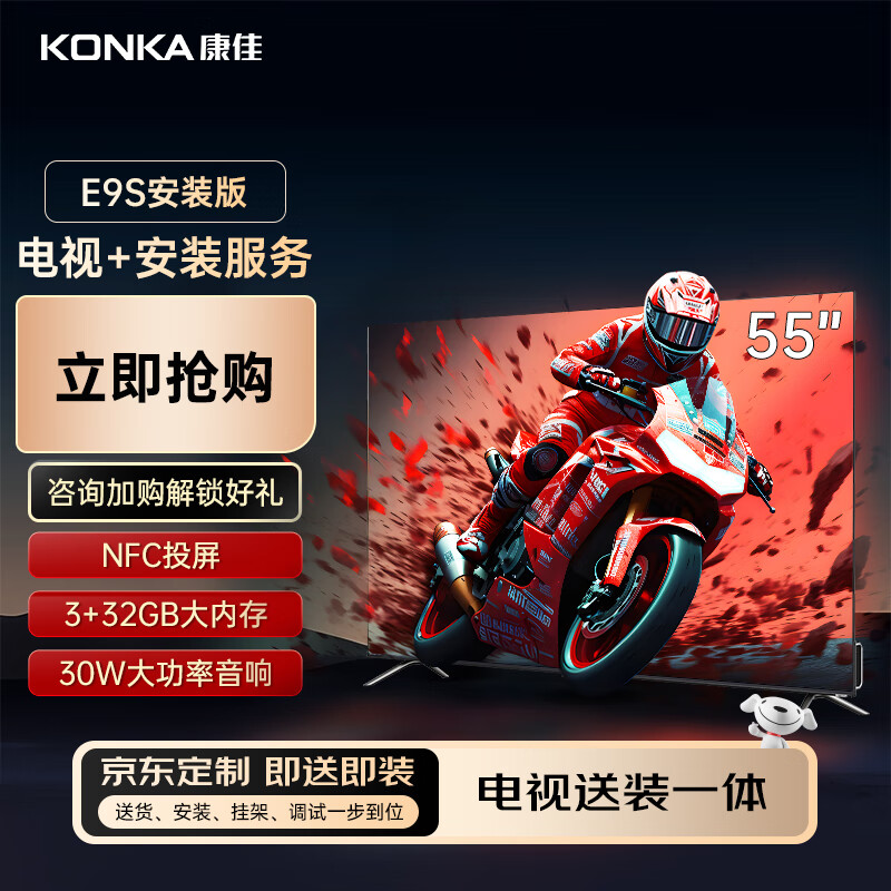 康佳电视 55E9S 55英寸 3+32G 120Hz MEMC 高刷护眼 4K超清屏投屏液晶平板电视机【免费上门安装】价格:2099.00元!