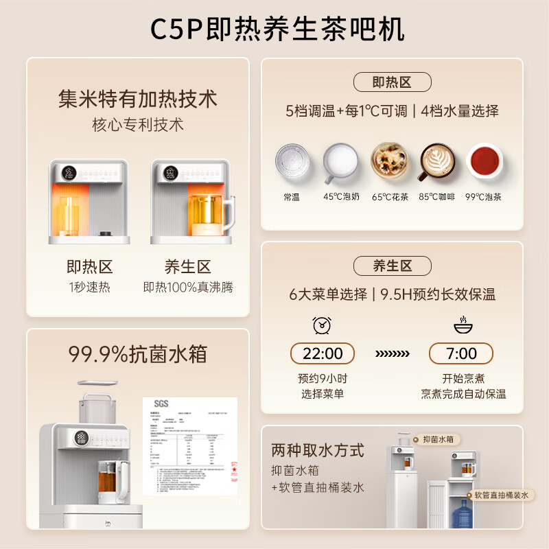 集米(jmey)即热式饮水机家用高端智能茶吧机直饮机 下置式水桶饮水器快速加热 客厅办公室一体机 C5PLUS价格:799.00元!
