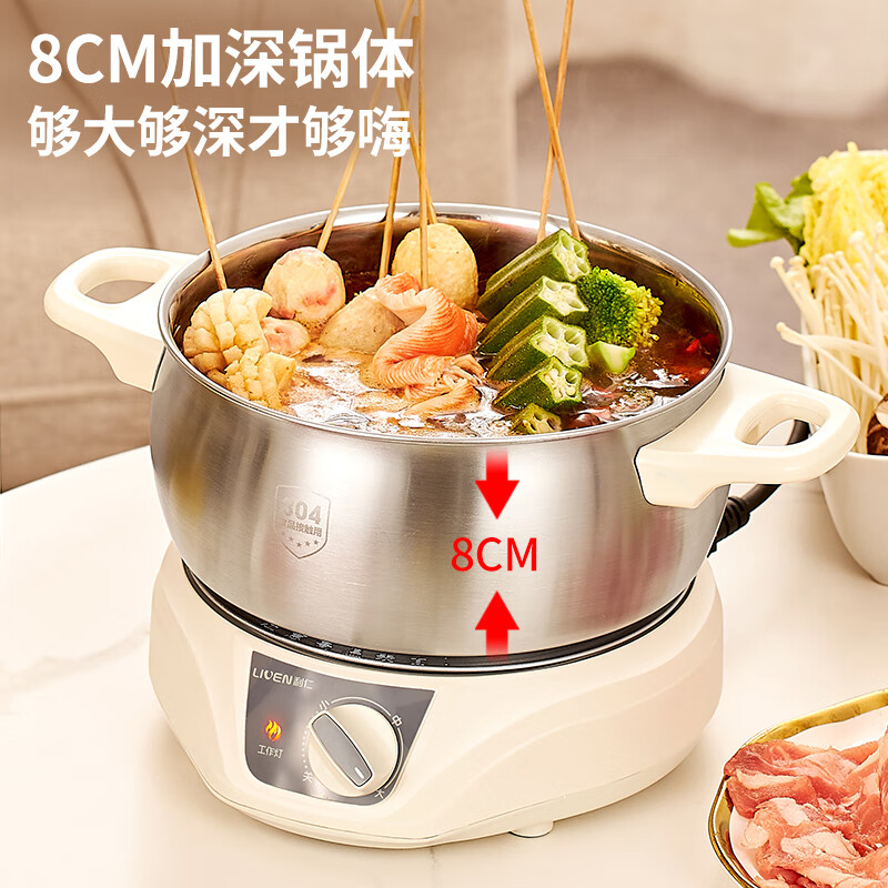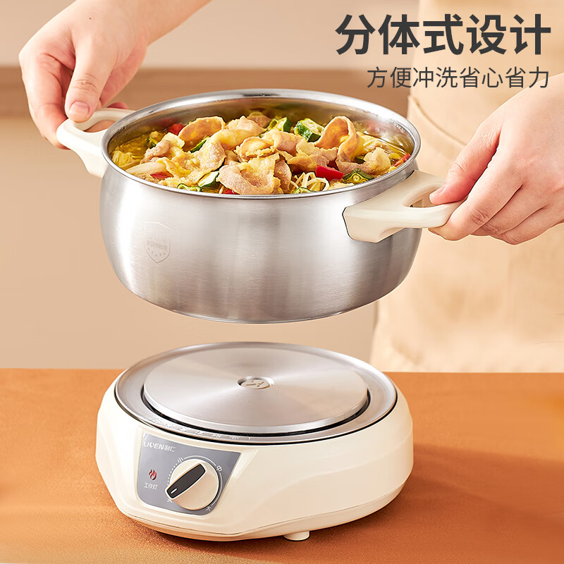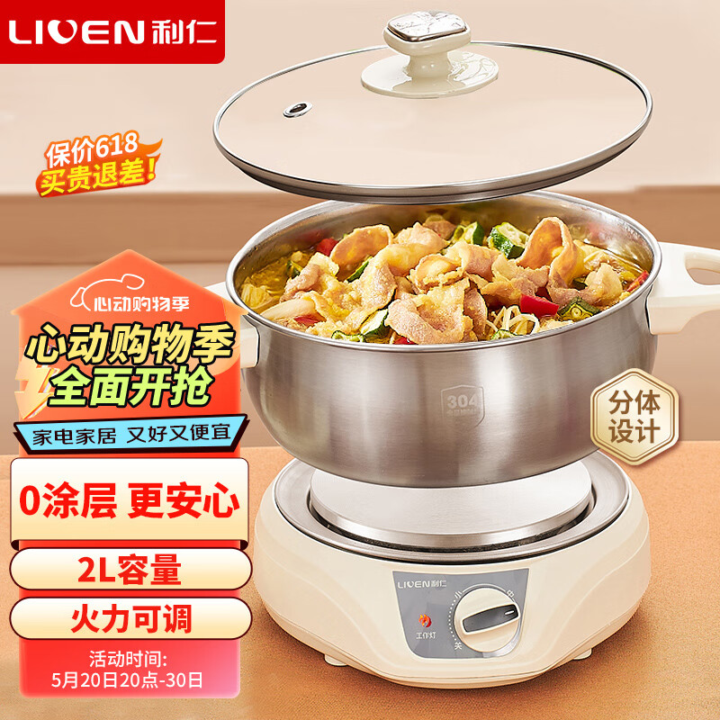 利仁(Liven)电煮锅分体304不锈钢0涂层小电锅电火锅宿舍电煮锅多功能锅泡面锅小煮锅电热锅2升DHG-180F价格:109.00元!