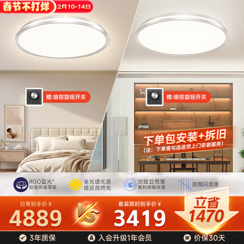 孩视宝【一室一厅套装】全光谱护眼吸顶灯卧室书房客厅灯儿童房灯AH37*2价格:4889.00元!