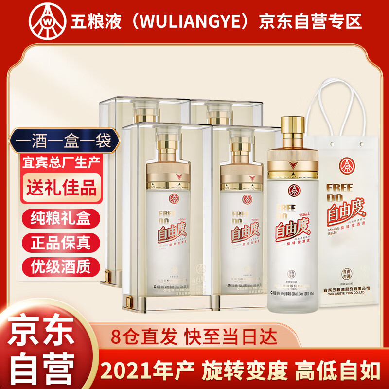 五粮液(WULIANGYE)股份公司出品 38-69度五粮液自由度 750ml*4瓶浓香型白酒整箱价格:1752.00元!