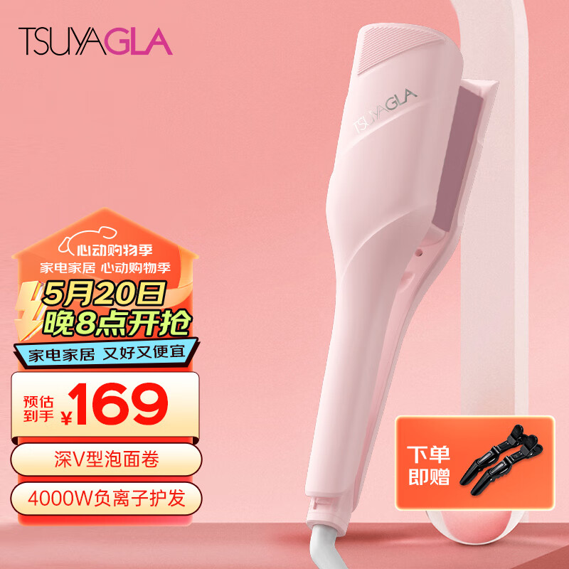 崔娅(TSUYAGLA)蛋卷卷发棒36mm 韩式大波浪蛋卷棒 卷发神器 负离子蛋蛋卷夹电夹板烫深V型卷T501粉色价格:189.00元!