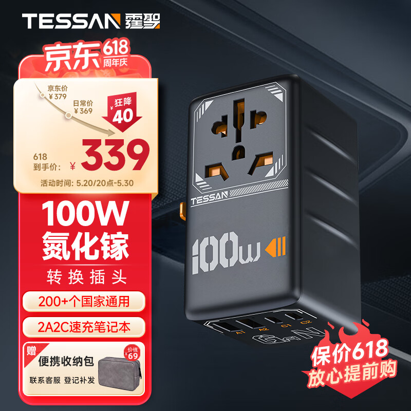 TESSAN霆圣氮化镓100W通旅行转换插头/旅行转换器/转换插头/英标欧标美标香港日本韩国东南亚适用价格:379.00元!