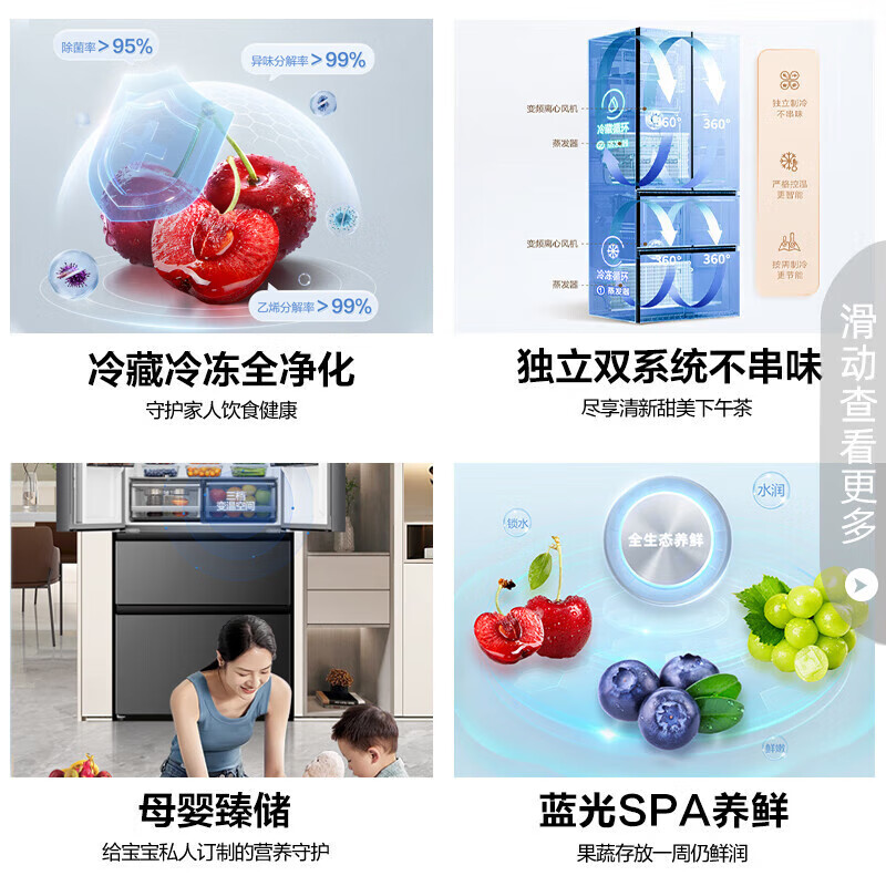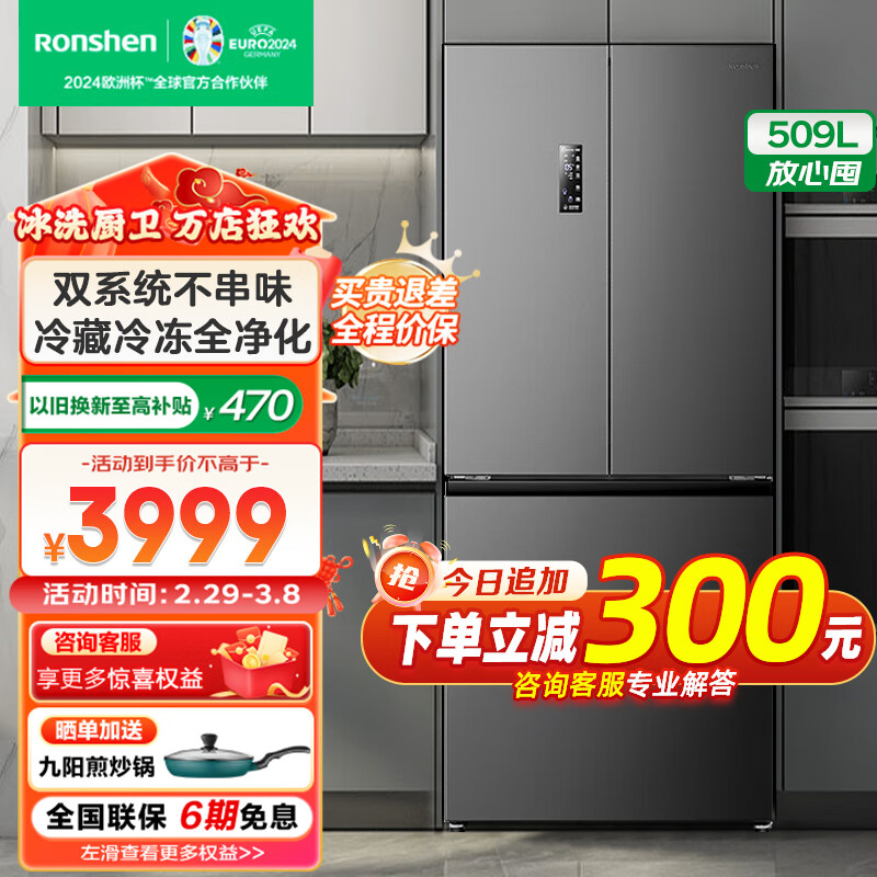 容声(Ronshen)离子净味509升变频一级能效法式多门四开门嵌入式冰箱灰色家用无霜除菌BCD-509WD18MP双循环大容量价格:4299.00元!