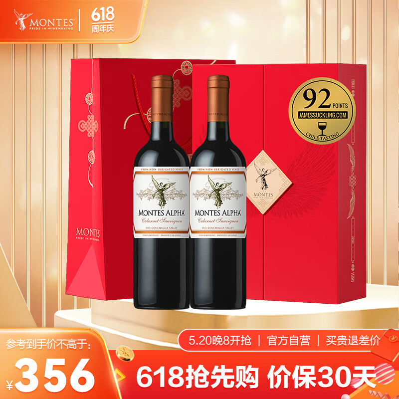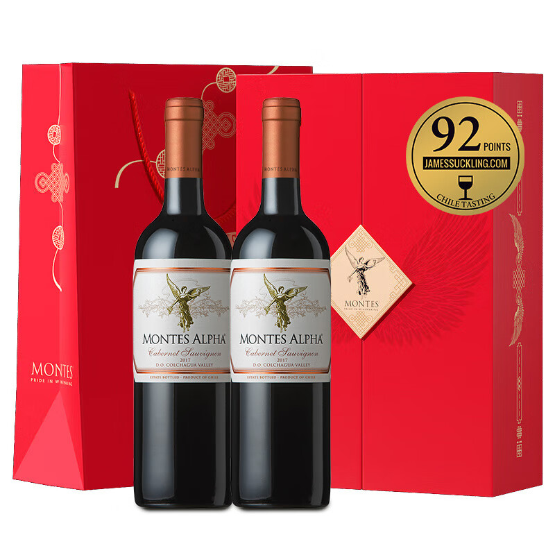 MONTES蒙特斯欧法赤霞珠红酒葡萄酒礼盒750ml*2婚礼宴请智利原瓶进口价格:406.00元!