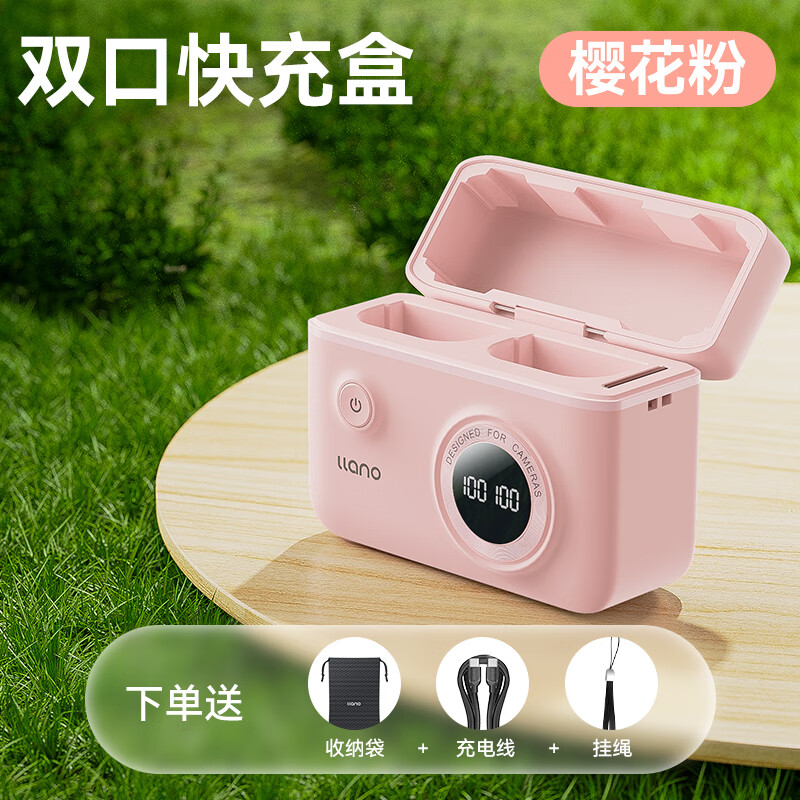 绿巨能(llano)佳能LP-E6相机电池R6快充盒5D4/90d/5d3/R5/80d/70d/60d/6D2单反充电仓可收纳数显充电器樱花粉价格:229.00元!