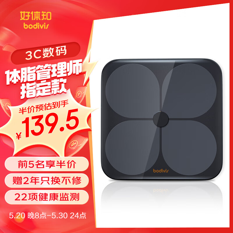 好体知(bodivis)清华同方 好体知智能体脂秤 体重秤精准家用电子秤人体脂肪秤 体脂称 健身减脂运动 蓝牙APP价格:369.00元!