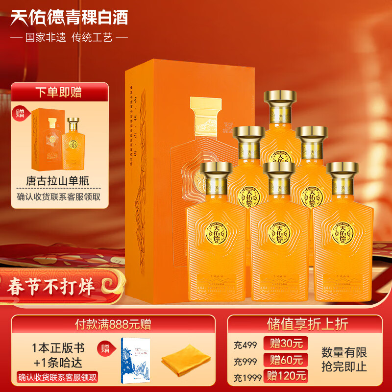 天佑德海拔唐古拉山有机52度清香型白酒500ml*6瓶 整箱装【年货送礼】价格:2088.00元!