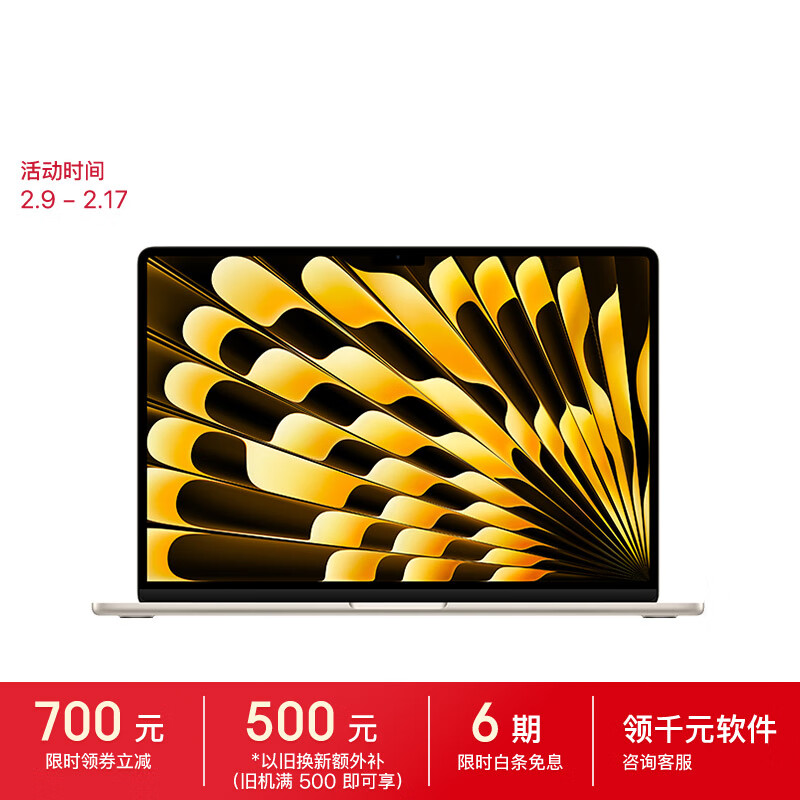 Apple/苹果2023款MacBookAir 15英寸 M2(8+10核)16G 512G星光色轻薄笔记本电脑Z18S00028【定制】价格:13499.00元!