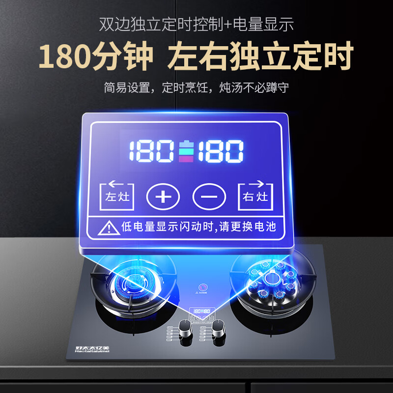 好太太亿美天然气燃气灶双灶家用煤气灶5.2KW台式嵌入式猛火炉具定时鸳鸯灶JZT-B6T价格:368.00元!