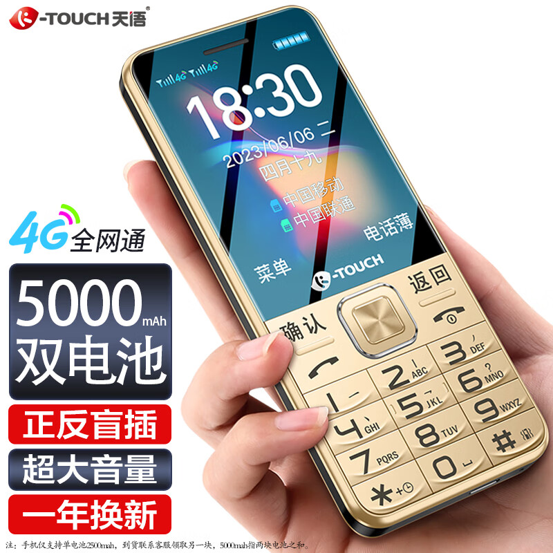 天语(K-Touch)S6 老人手机4G通移动联通电信版超长待机双卡双待学生老年手机功能机 铂光金价格:145.00元!