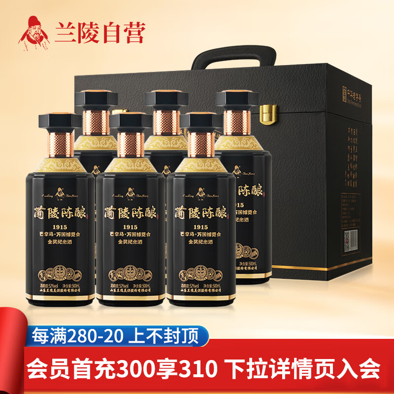 兰陵美酒陈酿 52度浓香型白酒粮食酒 500ml*6瓶整箱礼盒装 商务送礼价格:289.00元!