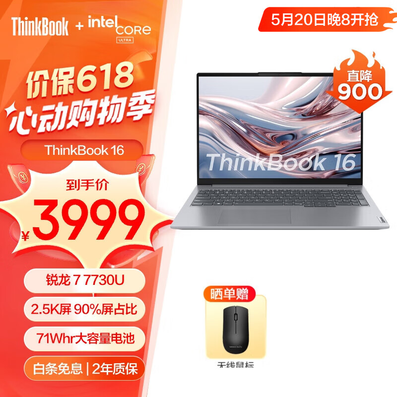 ThinkPad联想ThinkBook 14/16锐龙版 商务轻薄笔记本电脑 16英寸:R7-7730U 16G 1T 1PCD价格:4999.00元!