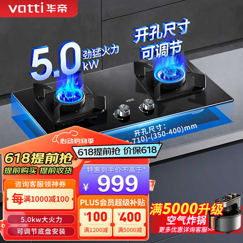 华帝(VATTI)i10070B燃气灶官方5.0kw多档火力灶具台嵌两用一级能效可调节安装开孔尺寸易清洁 单品 液化气价格:1099.00元!