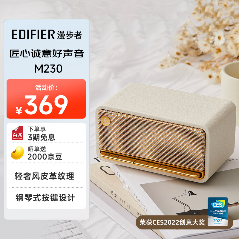 漫步者(EDIFIER)M230 高品质复古蓝牙便携音箱 一体式音响 家庭音响 桌面音响 户外露营 贝母白价格:369.00元!
