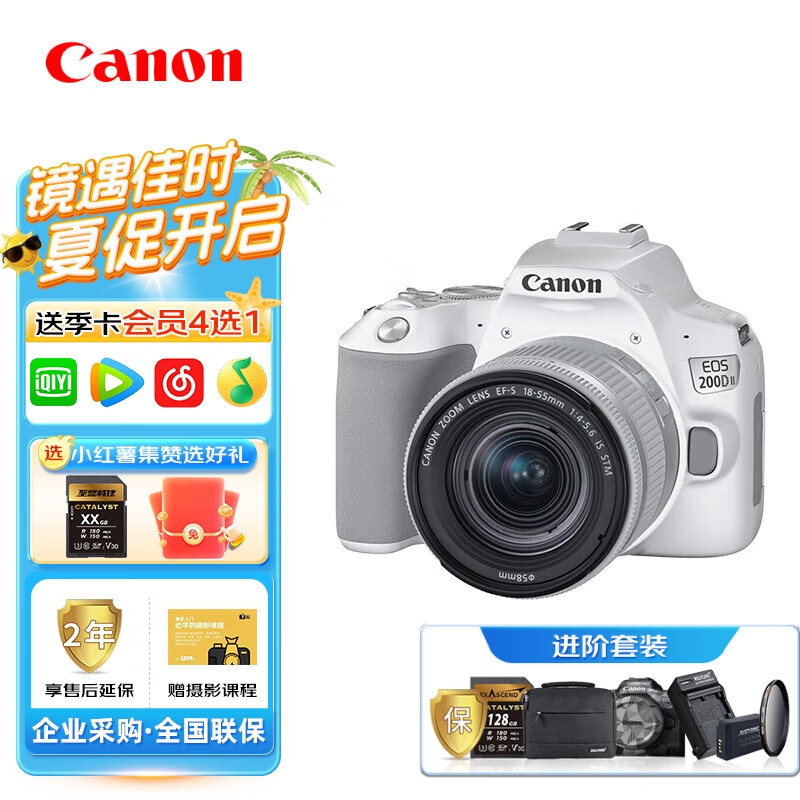 佳能(Canon)EOS 200D II 18-55mmSTM镜头套机【白色】 扫街拍摄套装价格:6699.00元!