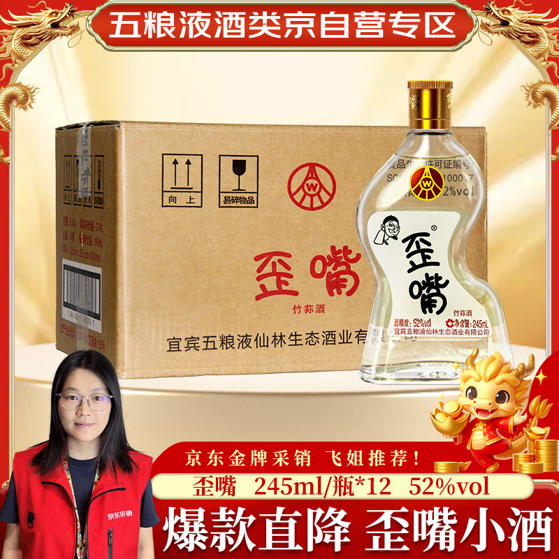 五粮液仙林生态酒公司五粮歪嘴酒52度245ml*12瓶整箱装价格:578.00元!